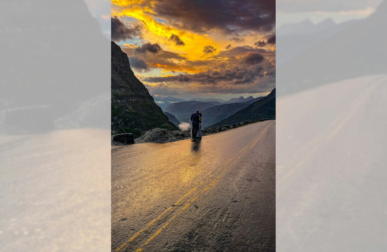 My one and only daughter got married in Glacier National park! We were on our way up to Logan's pass for pictures when we stopped on the road on the way up and I was able to capture this shot!