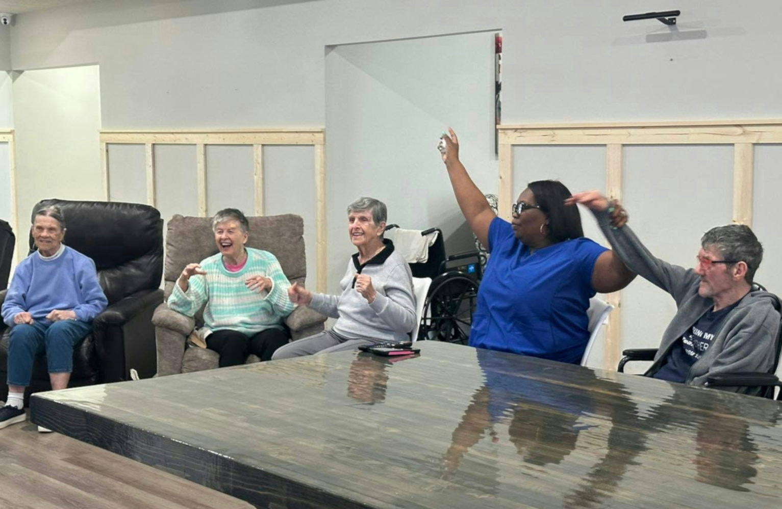 This is my second puzzle with you. My mother is in a dementia facility. One thing she still loves to do is her jigsaw puzzles. I find photos from the facility’s website that show her and as many of her friends there as possible, and I make puzzles out of them. The residents enjoy doing puzzles that have their pictures in them. Of course I get the facility’s approval first.